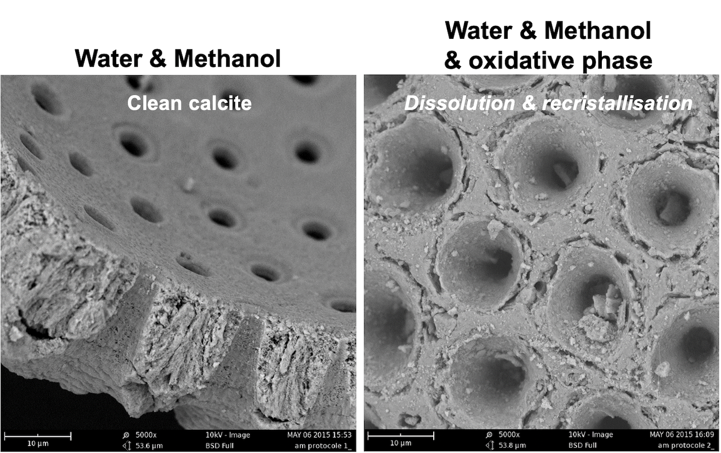 It is advised to avoid the potentially destructive oxidative step with H2O2 because Scanning Electron Microscopy (SEM) images show visible dissolution and recrystallization features to the shell fragments using H2O2 treatment (picture below. More details, in my PhD or in Peral et al., 2018).